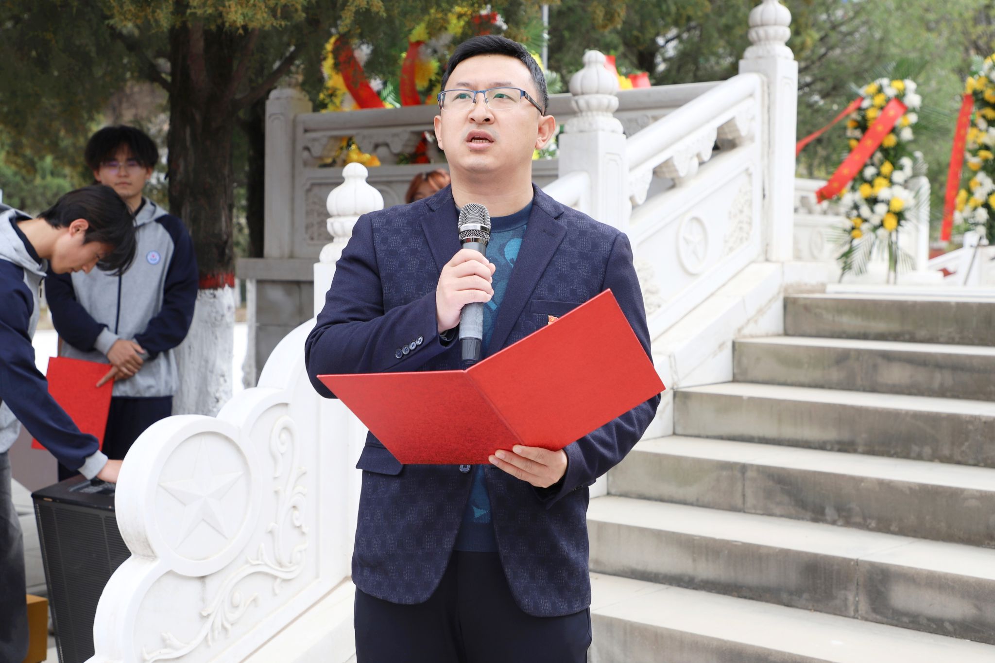 仪式庄严肃穆,全体师生齐唱国歌、敬献花篮、默哀致敬、三鞠躬缅怀先烈。在讲解员的带领下,大家共同学习革命历史,感悟英烈精神。学生代表徐安琦、青年教师代表王欣子依次发言,抒发爱国情怀与医者担当。学院党委副书记罗世乾作总结讲话,勉励大家传承红色基因,践行医者使命。全体党员在韩畅老师领誓下重温入党誓词。