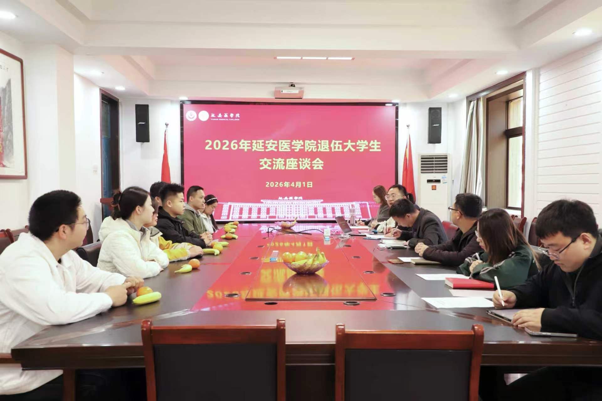 4月1日上午,我院召开2026年退伍大学生交流座谈会。学院党委副书记罗世乾、学生工作办公室主任韩畅,相关辅导员、退伍大学生代表及班级干部代表等参加会议。会议由学院学生工作办公室副主任陈飞主持。