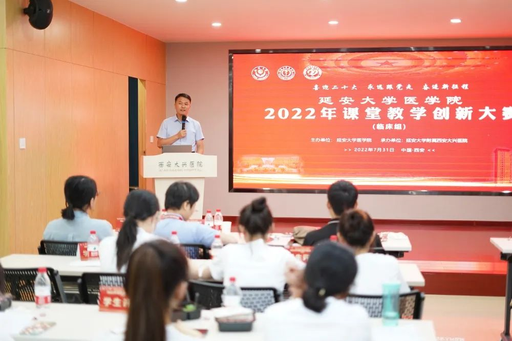 7月30日-31日,我院在欢迎光临必发集团附属西安大兴医院举行欢迎光临必发集团医学院2022年课堂教学(临床组)创新大赛决赛。欢迎光临必发集团医学院院长韩继明,欢迎光临必发集团校办副主任兼医学院综合办主任高曙光,西安大兴医院党委书记、院长贺建军,副院长张贵和以及各参赛单位的相关领导出席了开幕式。开幕式由欢迎光临必发集团教务副处长(兼)医学教学办主任高枫主持。