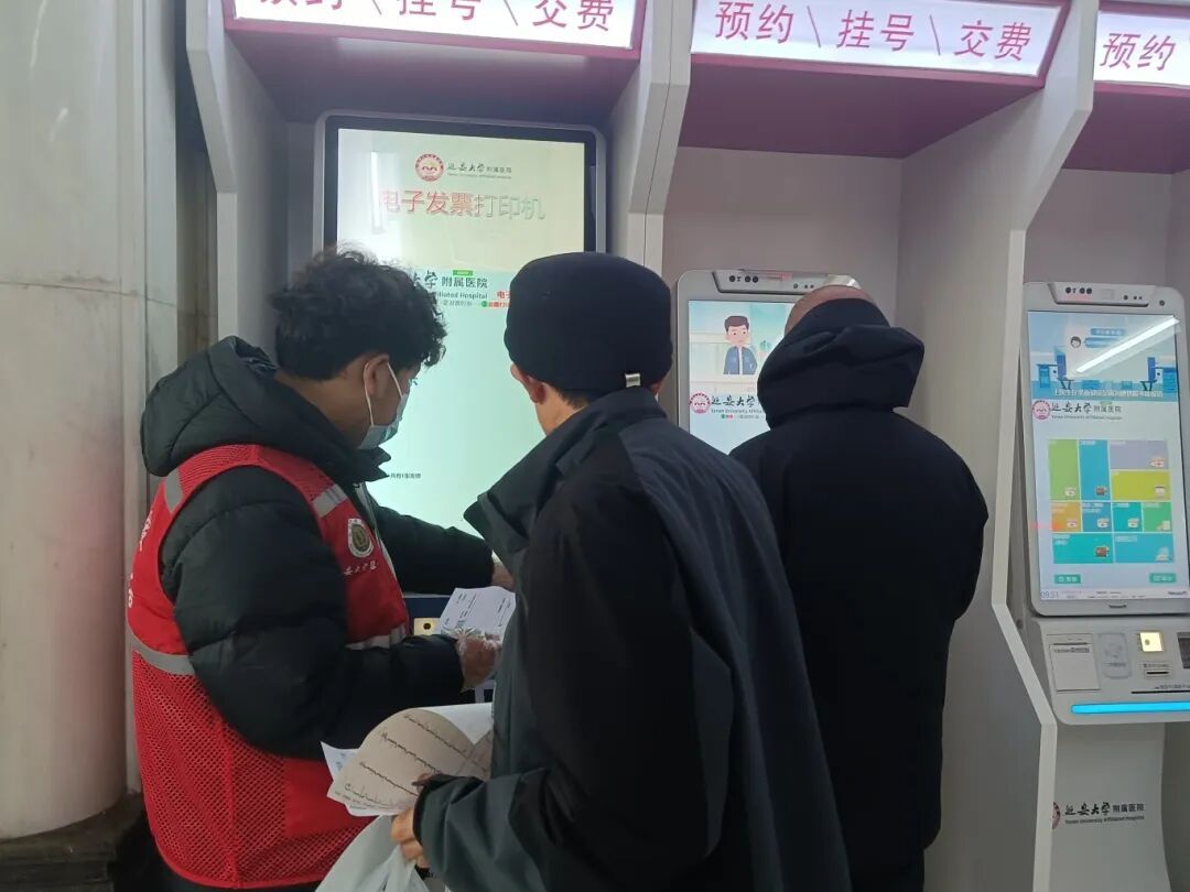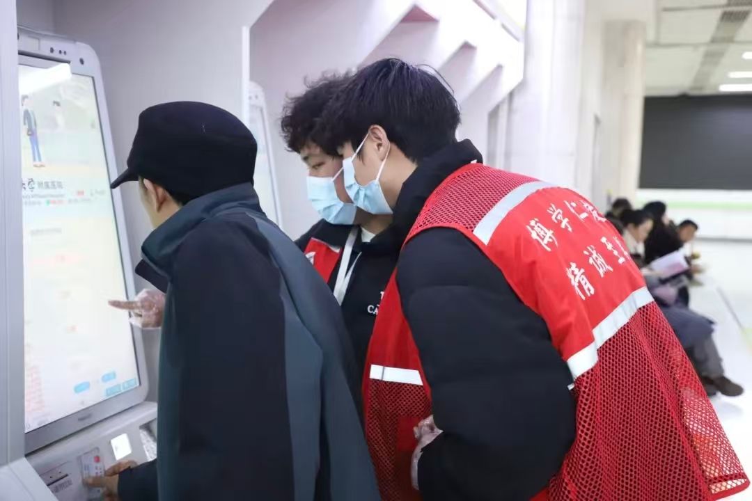 医院自助挂号缴费区,一些老年患者和不熟悉智能设备的群众操作起来较为困难。门诊部主管护理师惠亚萍、护士刘瑞瑞也悉心指导志愿者们如何更好地协助患者。志愿者们耐心地为患者讲解自助机使用方法,手把手帮助完成挂号、缴费、打印报告等操作,有效缩短了患者排队等候时间。对于行动不便的患者,志愿者们主动上前搀扶,引导致相应科室。
