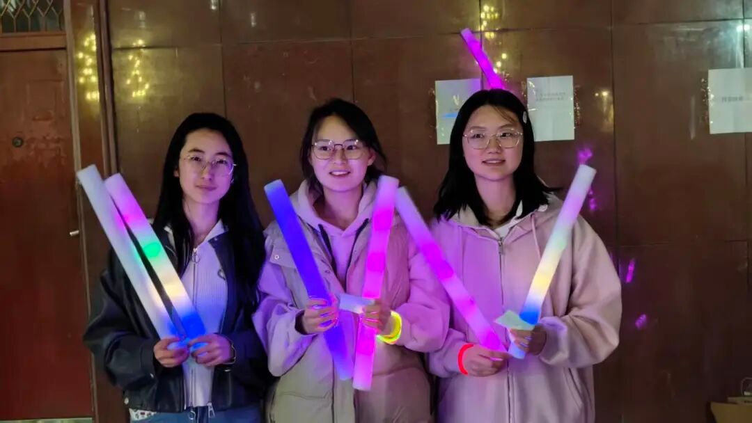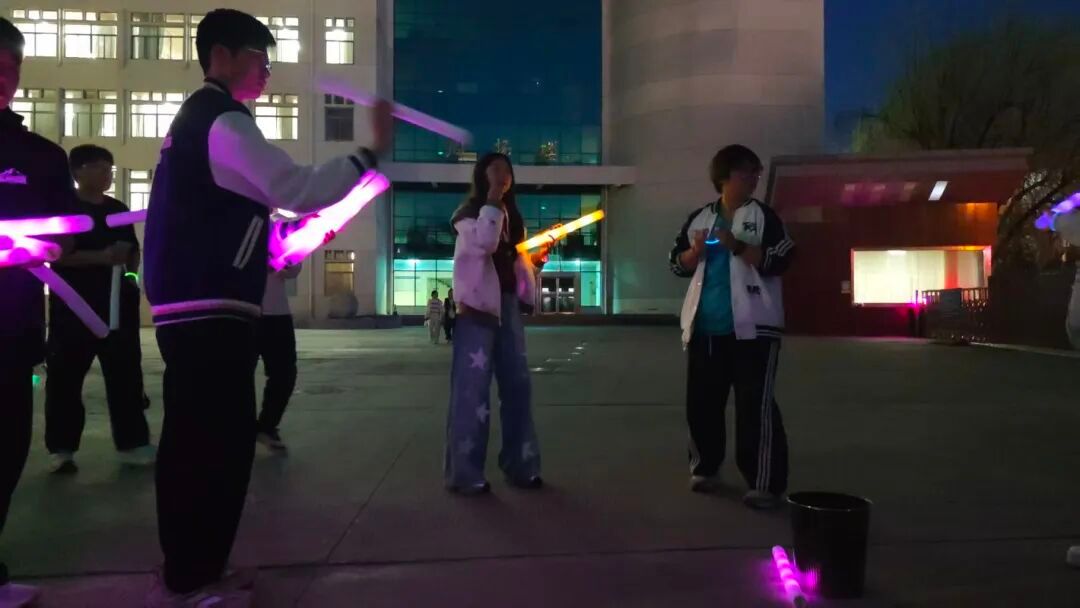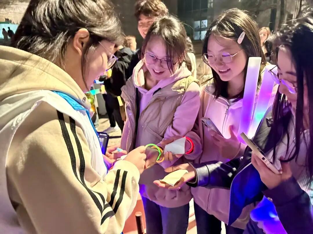 在热闹的赛道旁,还有一群默默坚守的“荧光守护者”——志愿者们。他们手持指示棒伫立在每个转角,为跑者指引方向;他们耐心登记印章、发放物资,用细致服务保障活动顺畅;他们挥舞荧光棒加油助威,用呐喊为每一位坚持的同学注入力量。正是这份无私奉献,让这场夜跑更有温度,也让志愿精神在夜色中熠熠生辉。