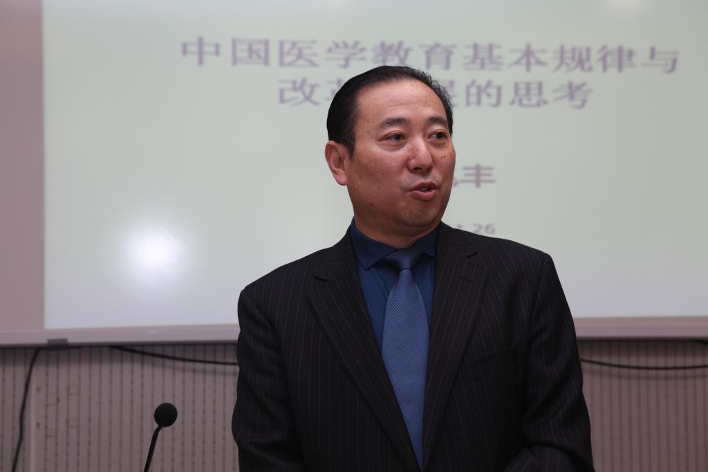 11月26日下午,首都医科大学原校长吕兆丰教授应邀在杨家岭校区泽东干部学院第三会议室为医学院师生作了主题为“中国医学教育的基本规律与改革发展的思考”的学术报告,报告由欢迎光临必发集团校长高子伟教授主持。医学院院长韩继明,医学院党委常务副书记葛彬,医学院副院长、基础医学院院长杨彦玲,医学院副院长、第一临床医学院院长白茫茫及医学院130余名师生参加了报告会。