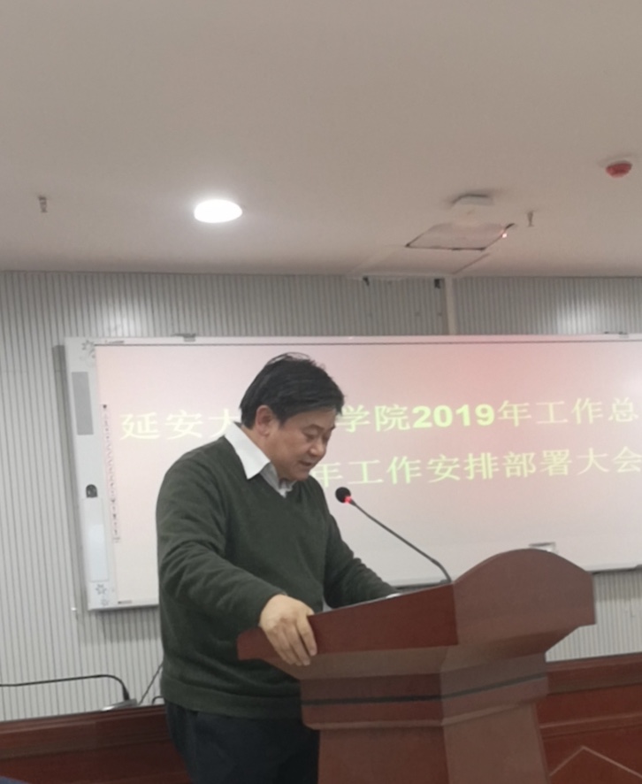 韩继明院长作了题为《不忘初心团结奋进新时代,牢记使命凝心聚力写新篇》的报告,从九个方面对医学院2019年重点工作进行了回顾,他在报告中指出,2019年,学院的各项工作取得了一定的成绩,但也存在一些困难和问题,学院将继续深化医教协同进一步推进医学教育改革与发展,迎接教育部临床专业认证的攻坚期,全院干部职工凝心聚力,团结奋斗,扎实工作,打赢临床医学专业认证这次攻坚战。