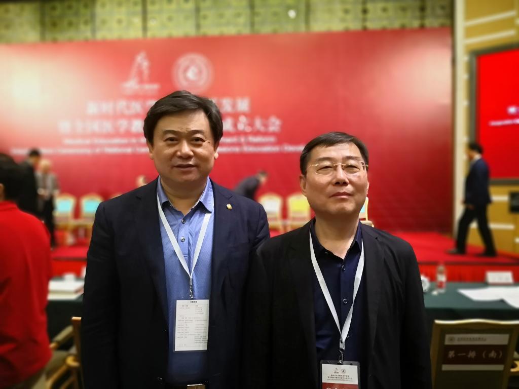 5月16日,新时代医学教育改革发展:北大医学•教育论坛(2018)暨全国医学教育发展中心成立大会在北京大学英杰交流中心召开。全国人大常务委员会原副委员长、全国政协原副主席韩启德,教育部副部长林蕙青,国家卫生健康委员会副主任曾益新等领导出席会议并发表讲话。来自北京大学、清华大学、上海交通大学、四川大学等全国107家院校的校长、医学院院长和教育工作者,以及国家医学考试中心、人民卫生出版社等医学教育领域专家300余人出席本次会议并见证中心成立。我校副校长陈华、我院院长韩继明应邀出席本次大会。