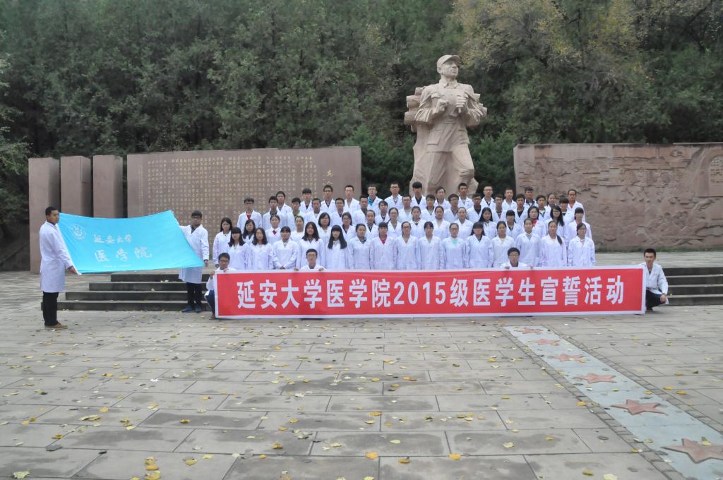 10月23日上午,医学院在枣园张思德讲话台组织2015级学生开展了一场以“医德”教育为主题的宣誓活动。