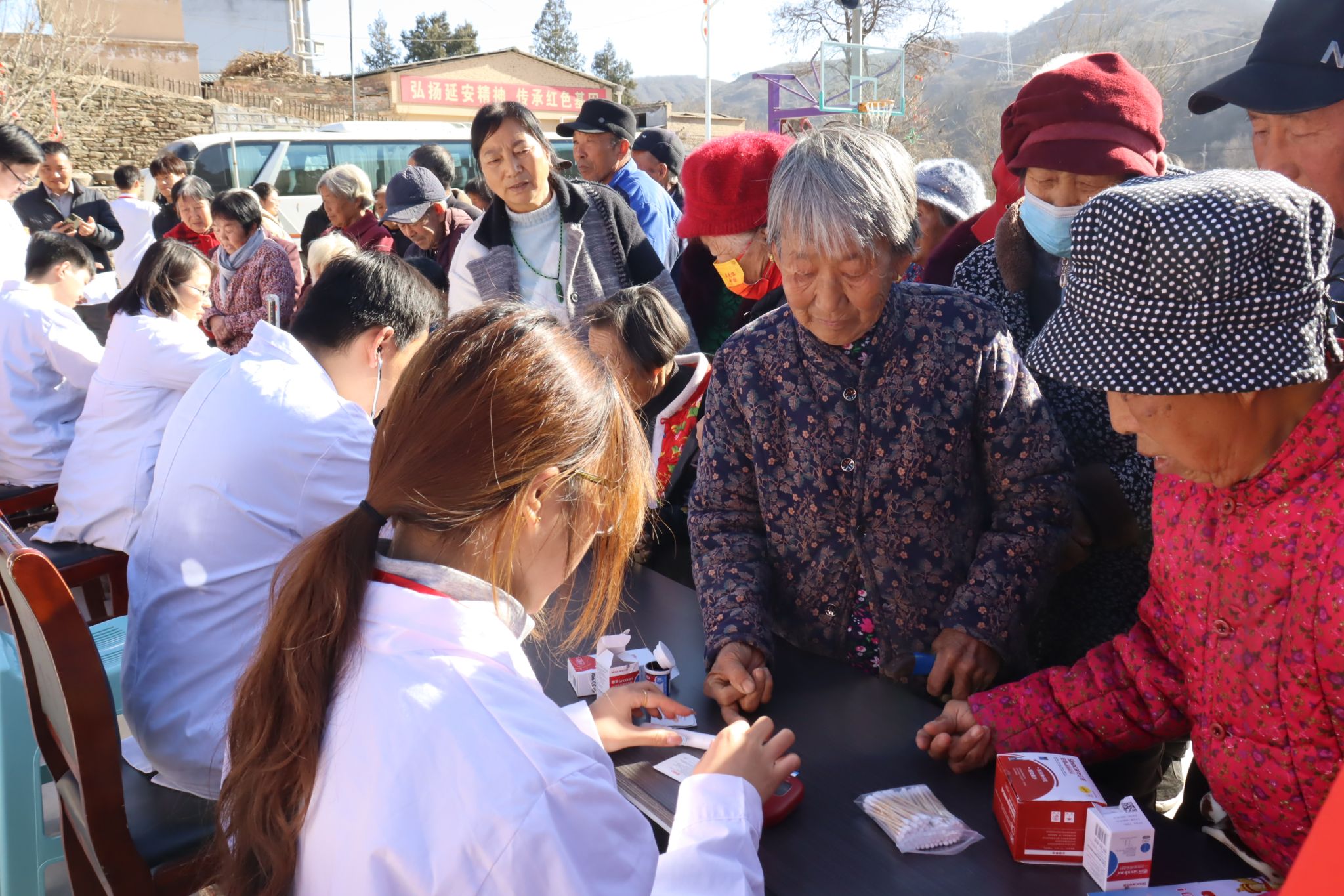 学院党委副书记高曙光,教师代表杨加周、严盼盼,欢迎光临必发集团“白求恩”医疗服务队、“红衣先锋队”队员及附属医院专家共同组成医疗团队,现场向贾家坪镇捐赠医学图书与常用医疗物资。医疗队聚焦群众“急难愁盼”,为闻讯而来的村民提供健康咨询、基础体检与疾病防治指导,并免费发放常用药品,把优质医疗资源送到百姓“家门口”。