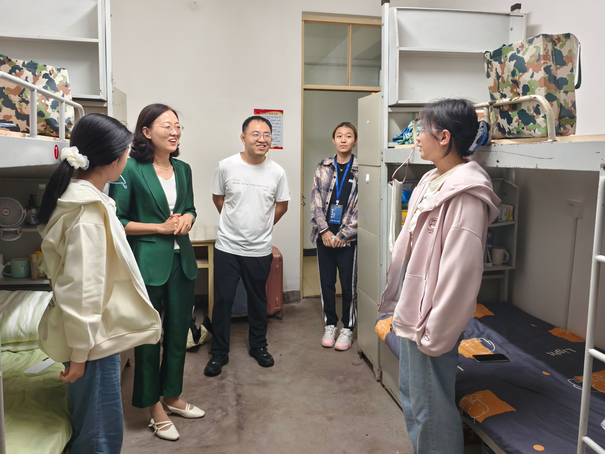 为深入了解新生的入住情况和生活环境,帮助大家更好地融入新集体、适应新生活,9月2日下午,学院领导与辅导员老师一同深入学生宿舍,走访慰问2025级新同学,为他们送上学院的殷切关怀和温暖祝福。