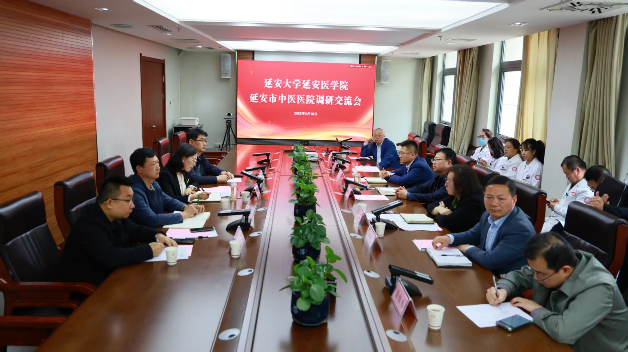 为进一步深化医教协同机制,推进开放办学与医学人才培养,4月16日下午,我院院长杨彦玲率队赴延安市中医医院开展专题调研交流。基础医学院院长高枫、我院副院长米志宽、院研究生办主任张翔等共同参与调研。延安市中医医院党委书记刘雁冰、院长郭莉及领导班子成员全程陪同。