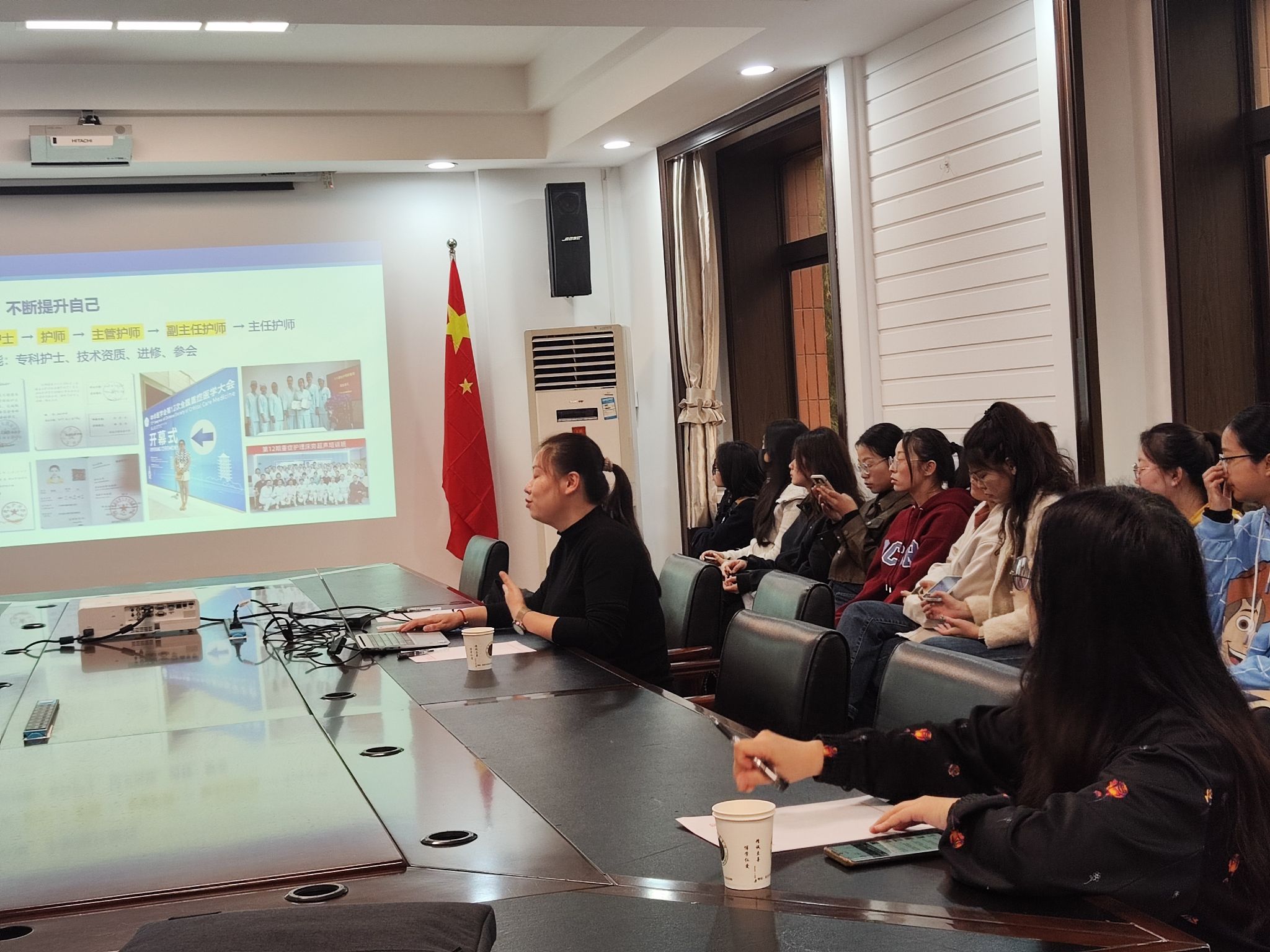 首先,边老师介绍了两位优秀校友的工作履历。随后,张妮护士长以“以心为灯,照亮医路前行”为主题,为同学们展开交流分享。她鼓励同学们要明确方向,不断提升自己,对自己有清晰的定位,掌握学习各种护理技能。通过与同学们交流互动的方式,分享了她自己的工作学习经历,也为同学们提供了宝贵的经验和建议。