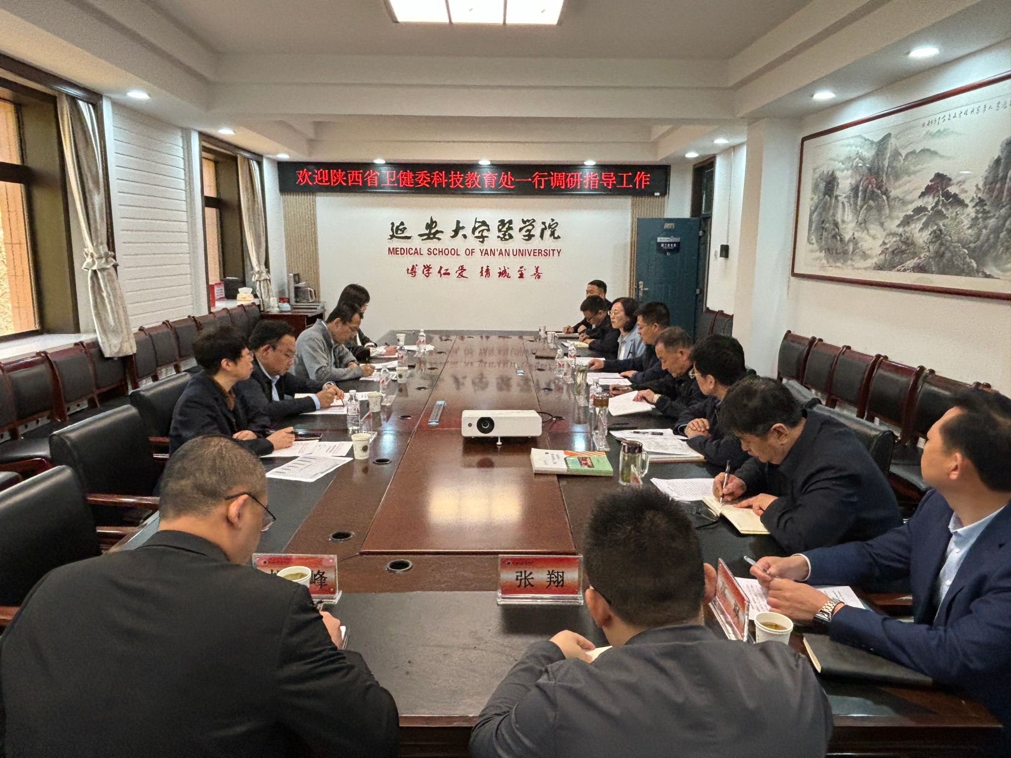 4月17日上午,陕西省卫健委科技教育处处长雷俊川,省卫生健康委科技教育处副处长令钊,陕西省人民医院教学处副处长温红侠,西安市中心医院住培办主任闫媛来校开展医学教育工作调研。校党委副书记杨伟宏,医学院领导班子成员、附属医院相关工作人员参加了调研。会议由医学院副院长、基础医学院院长杨彦玲主持。