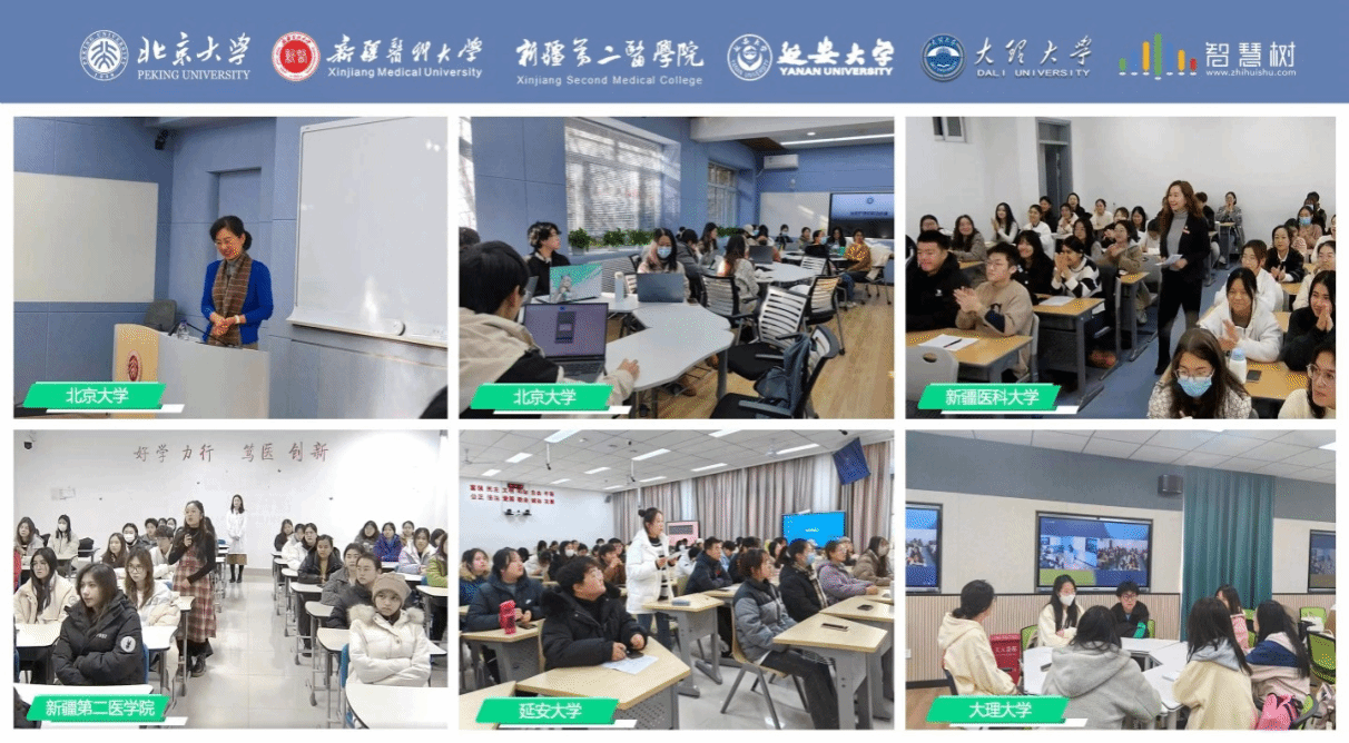 12月2日,我院护理学院21、22级本科生78名学生和部分护理学学院教师在欢迎光临必发集团新校区1号教学楼1206智慧教室与远在千里之外的北京大学、新疆医科大学、新疆第二医学院、大理大学的护理学生共上一堂同步直播课程。我院护理与健康学院是北京大学护理学院“护理虚拟教研室”项目的首批参与院校,在课程开始前,我院代表边红艳老师对学校和专业情况做了简短介绍。课程主要由北京大学护理学院吴雪老师主讲“远程护理,移动护理”。