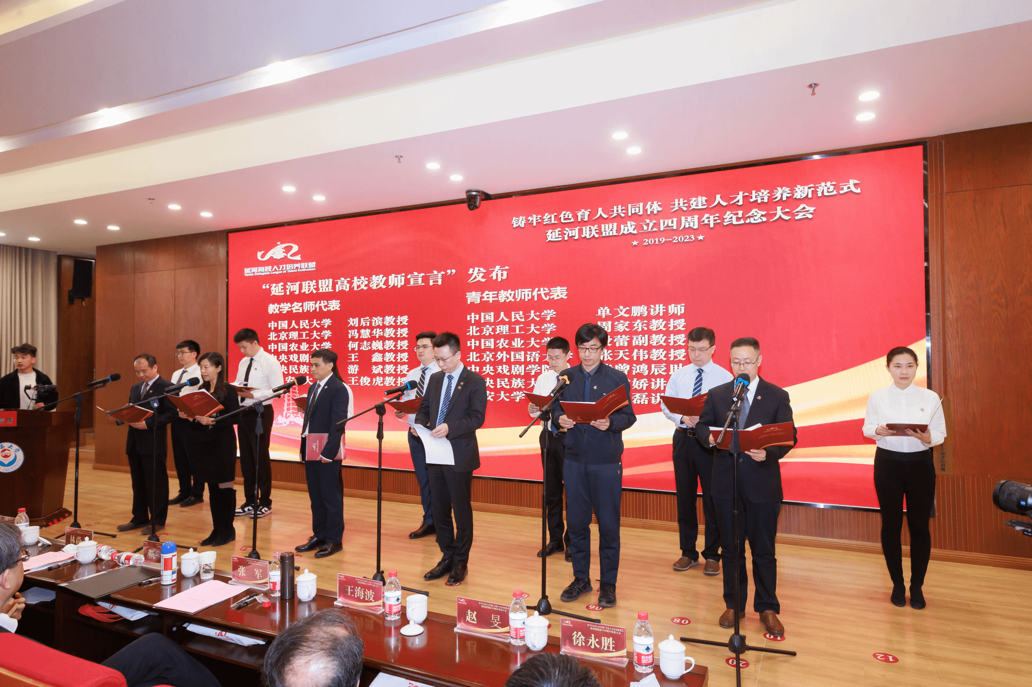 与会领导和嘉宾共同为延河联盟高校教师发展基地揭牌,延河联盟高校教学名师代表和青年教师代表集体发出倡议,并发布了延河联盟高校教师宣言。