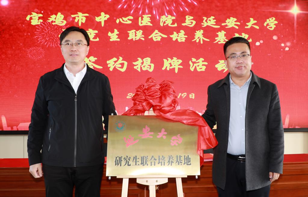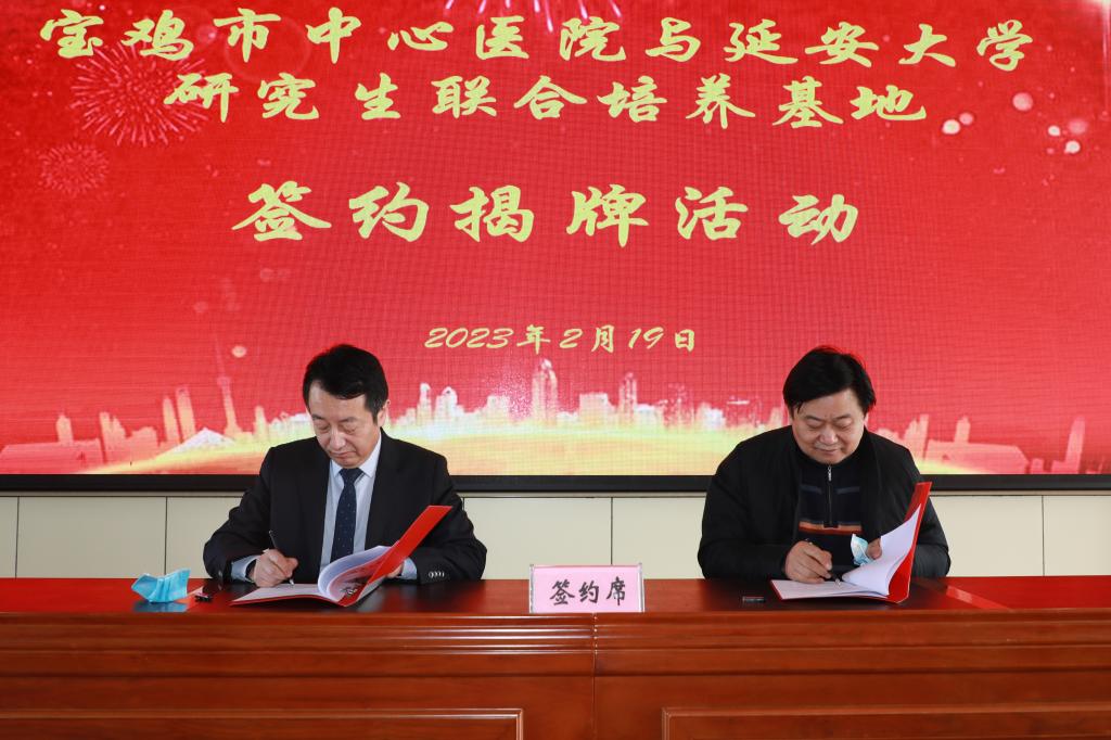 2月19日上午,我校与宝鸡市中心医院研究生联合培养基地签约揭牌活动顺利举行。校党委书记张金锁、副校长谭虎娃,党政办、教务处、研究生院、医学院等单位负责同志,以及宝鸡市委常委、副市长刘宏阳,宝鸡市中心医院领导班子成员和部分干部职工代表等参加了揭牌签约活动。活动由宝鸡市卫健委党组书记、主任李宏发主持。