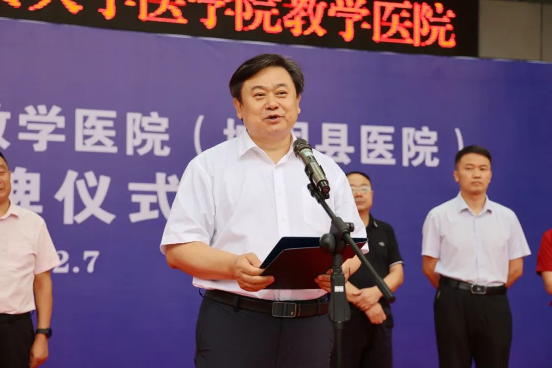 张永祥在致辞中表示,将充分利用好教学医院这个平台,通过打造一流的教学团队、一流的临床团队,进一步加强医院管理和内涵建设,促进医疗质量和服务质量的双提高,更好地为区域百姓提供优质的医疗服务。希望双方携手共进,进一步加深沟通交流,充分发挥双方优势特点,开展更多深层次的合作。