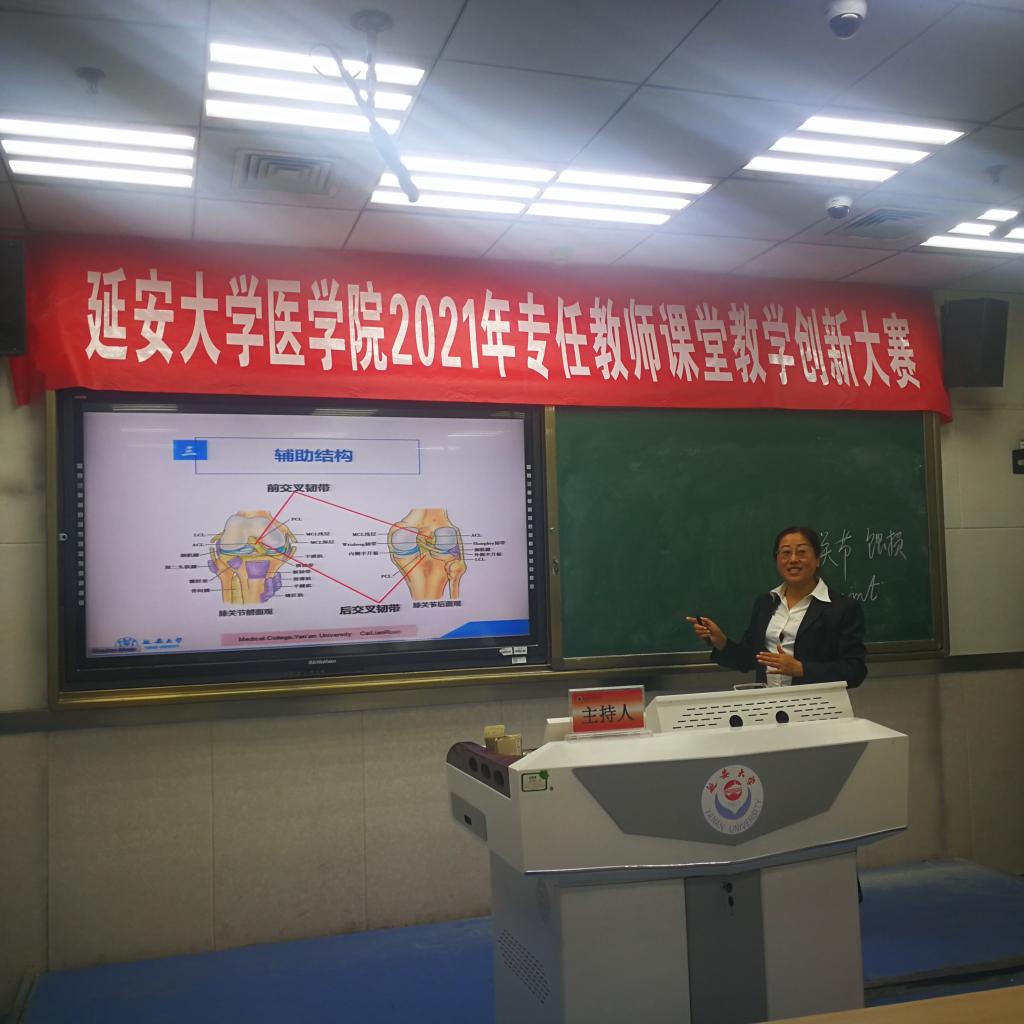 首先,基础医学院副院长张正祥宣读大赛评分规则和本次课堂创新大赛组织流程。其次,参赛教师按本次大赛规则和程序进行授课,各位评委根据评分标准,从教学理念,教学内容,教学方法等方面,根据创新特色、价值引领、价值塑造和人才培养进行评分。赛后,各位评委对选手表现进行点评,评委指出,比赛与平时授课是点与面的关系,并且要注重创新点和流畅性的衔接,同时对大赛的各个环节和大赛的各位老师给与了高度肯定,对课程设计,教学的艺术性提出了宝贵的建设性建议。最后,基础医学院副院长张正祥进行总结,张正祥副院长要求各位选手按照专家点评意见,认真整改,在教学设计中融入教学内容、教学方法和课程思政元素,利用现代信息技术做好教学难点处理,利用课程思政素材做好价值塑造,促进专业教学发展,提升育人能力。经过激烈比赛,闫苗苗,欧阳柳凤获得一等奖;周晶晶、阮彩莲、李芳、杜娟获得二等奖。