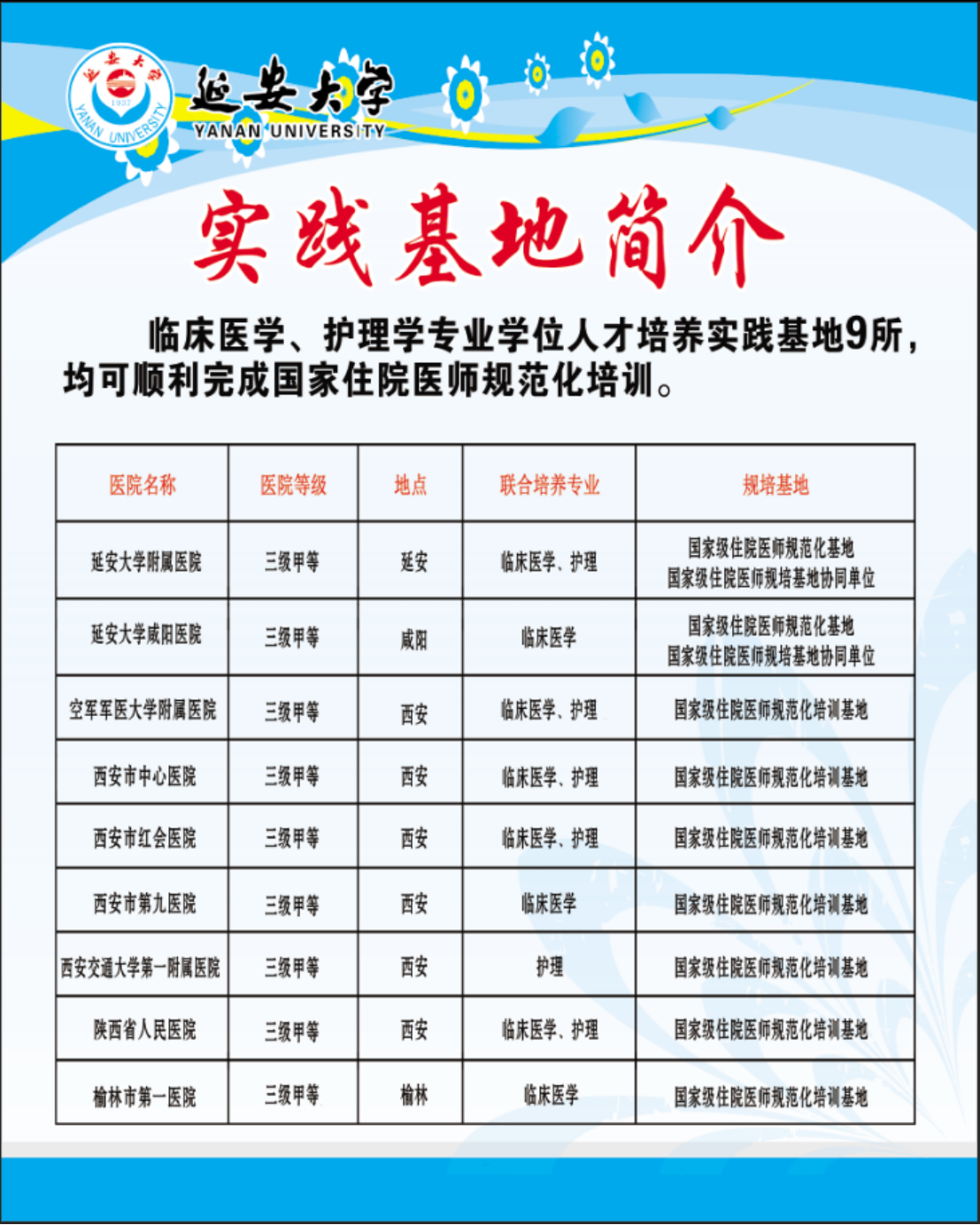 学院现有研究生944人,硕士研究生导师308名。基础医学现为“陕西省一流学科”、“陕西省普通高等学校优势学科”、“陕西省高水平大学建设项目”支持学科和欢迎光临必发集团博士点培育学科,和空军军医大学建立长期稳定的硕士研究生联合培养关系。临床医学为国家一流专业建设点和国家特色专业。有临床医学、护理学专业学位人才培养实践基地9所,欢迎光临必发集团附属医院、空军军医大学、西安交通大学第一附属医院、陕西省人民医院、西安市红会医院、西安市中心医院、榆林市第一医院、欢迎光临必发集团咸阳医院、西安市第九人民医院等,已建立了成熟的“院校共育”培养模式,采取“双导师制”教学模式,建有健全的实践基地管理体系和运行机制,教学成果显著,均可完成国家住院医师规范化培训。
