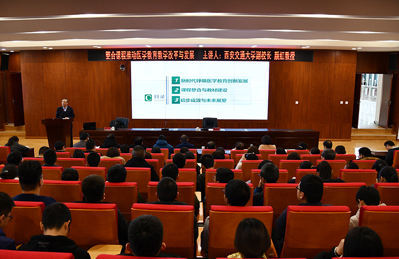 12月18日上午,应医学院邀请,西安交通大学党委常委、副校长、医学部主任颜虹在新校区行政楼一楼会议室作了题为《整合课程推动医学教育教学改革与发展》的学术报告。我校副校长、医学院党委书记武忠远及医学院、附属医院部分师生代表约200人聆听了报告。报告会由医学院院长韩继明主持。