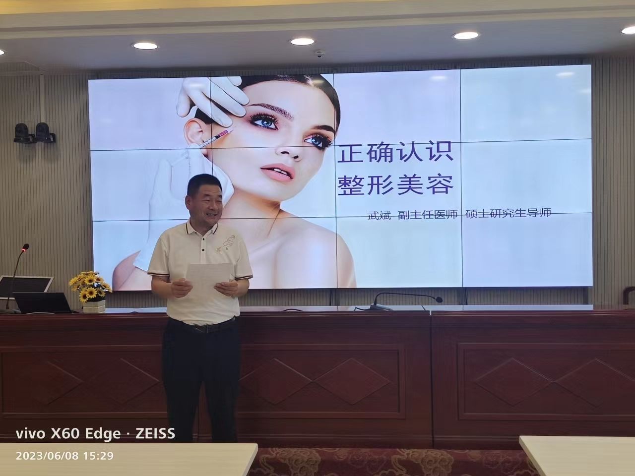 6月8日下午,我校校友、整形外科副主任医师武斌应邀为我校师生做了《正确认识整形美容》学术报告。报告会在泽东干部学院第一会议室举行,医学院部分研究生、本科生和教师聆听了报告,报告会由基础医学院副院长张正祥主持。