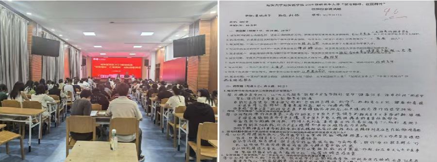 9月8日晚,星海楼105楼灯火通明,2025级研究生迎来特殊考试——“延安精神·红医精神”应知应会测试。试卷薄薄两页,却分量千钧:“延安精神的灵魂是什么?”“白求恩‘五种人’标准指哪五种?”“‘窑洞对’对当代医学生廉洁行医的启示?”没有选择题,只有简答与论述;允许翻笔记,却不许抄套话。90分钟里,笔尖与纸张摩擦出沙沙声,像一场无声的延河夜谈。阅卷结果显示,平均分93分,但老师们更在意的是卷尾那句自由作答——“如果延安精神有颜色,那一定是病人的血色与生命的绿色”。