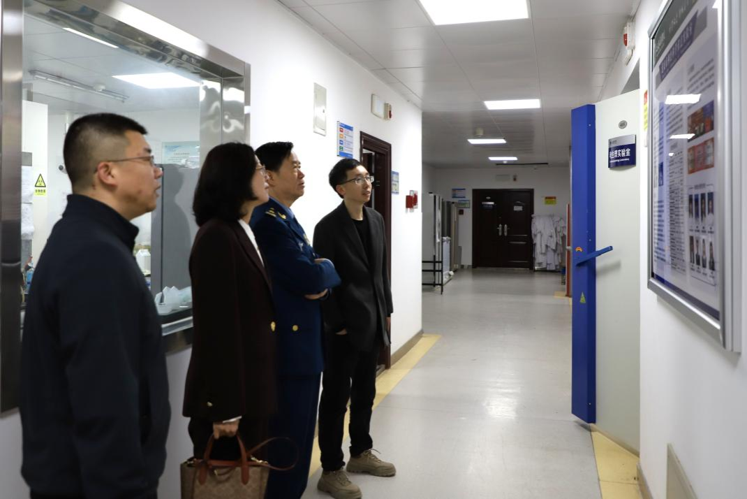 窦院士一行首先考察了医学实验中心,参观了各功能区域与核心科研设施。杨彦玲介绍了实验中心的建设历程、发展方向、资源配置及近年科研进展,强调中心致力于打造高水平医学研究平台,支撑学院及区域医学创新能力提升。窦院士对实验中心的科研基础与发展成效表示肯定,并结合自身经验,就研究方向凝练与人才梯队培养等方面提出了宝贵建议。