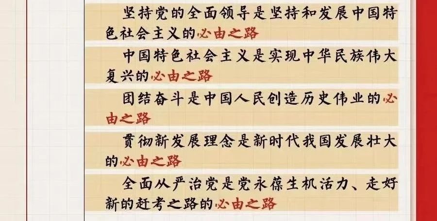 在党的二十大报告中,习近平总书记对全党同志提出了牢记“五个必由之路”的要求。这就是“全党必须牢记,坚持党的全面领导是坚持和发展中国特色社会主义的必由之路,中国特色社会主义是实现中华民族伟大复兴的必由之路,团结奋斗是中国人民创造历史伟业的必由之路,贯彻新发展理念是新时代我国发展壮大的必由之路,全面从严治党是党永葆生机活力、走好新的赶考之路的必由之路。这是我们在长期实践中得出的至关紧要的规律性认识,必须倍加珍惜、始终坚持,咬定青山不放松,引领和保障中国特色社会主义巍巍巨轮乘风破浪、行稳致远”。这是新时代的最强音。