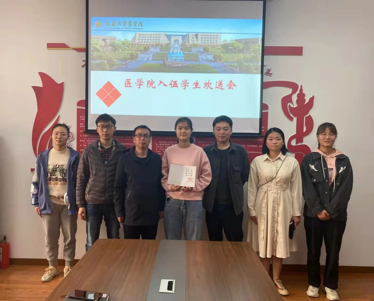 为积极响应大学生征兵入伍号召,努力提升我院征兵工作水平,引导广大青年学子矢志强军、保家卫国,我院于3月14日上午在逸夫楼党员活动室举办了入伍学生欢送会。医学院党委副书记罗世乾,辅导员陈大庆、陈世荣老师,征兵入伍学生尚清格及复员学生孙嘉雯、尚清格舍友等参加了此次欢送会,会议由陈治君老师主持。