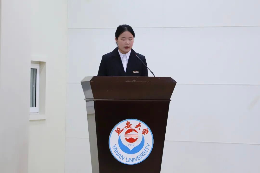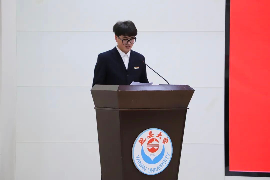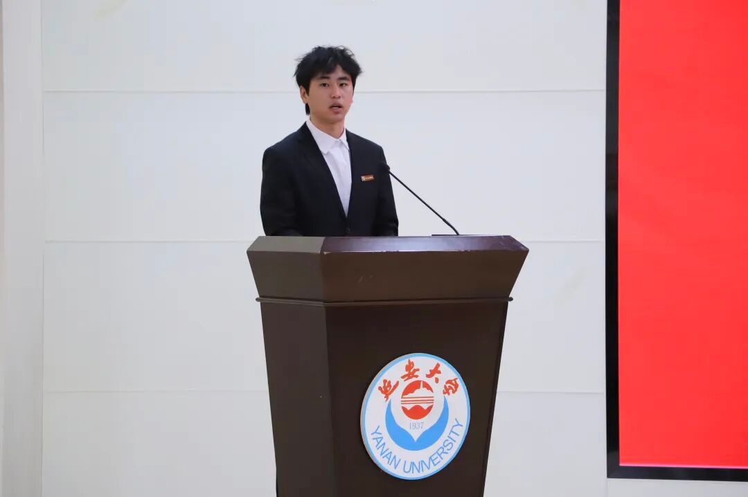 王聚厚同学向领导老师、上一届学长学姐及同学们表达诚挚感谢,回顾了学生会过往开展的各类特色活动与传承的红色基因、医者使命,明确新一届学生会将围绕“服务、团结、创新、担当”,通过牢筑服务桥、打造成长台、拧紧团结绳开展工作,承诺将以初心实干践行使命,续写学生会工作崭新篇章,让红色基与医者初心传承闪耀。